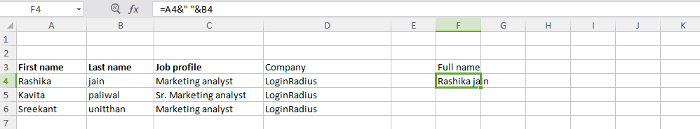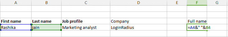 บางครั้งข้อมูลที่เรามีอยู่นั้น เราต้องการจะต่อข้อความ เราสามารถใช้เครื่องหมาย & ตามรูปด้านล่าง