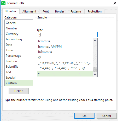 ซ่อนข้อมูล บาง cell ใน Excel excel Created At : 2023-05-27 00:33 Views 👀 : output เราจะทำการซ่อนข้อมูลใน Excel โดยการเปลี่ยน format ข้อมูล ดังนี้ เลือกข้อมูลที่ต้องการ จากนั้นคลิกขวา แล้วทำการเลือก format cells จากนั้นเลือก custom แล้วก็พิมพ์ ;;; ตามรูป outputผลลัพธ์ที่ได้ก็จะเป็นประมาณนี้