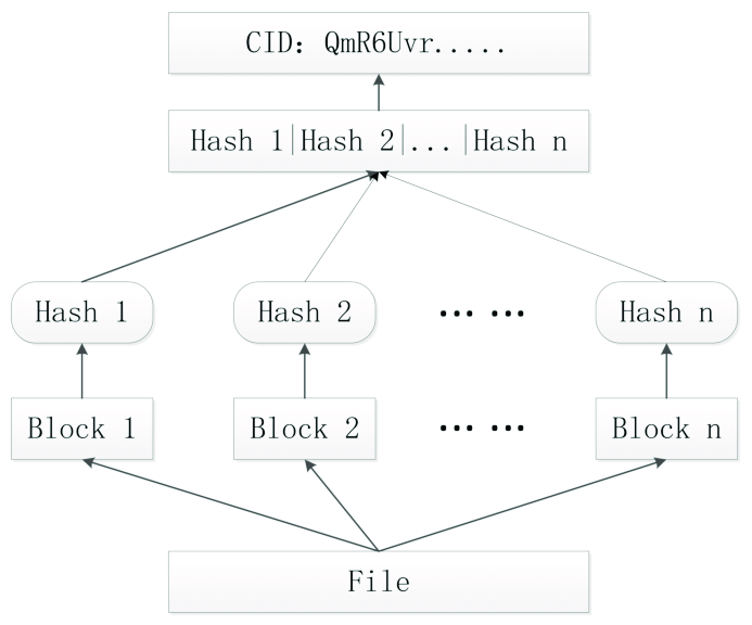 ใน IPFS ไฟล์จะถูกแบ่งออกเป็นส่วนย่อย ๆ และจะถูกกำหนดไว้โดย content identifier (CID)