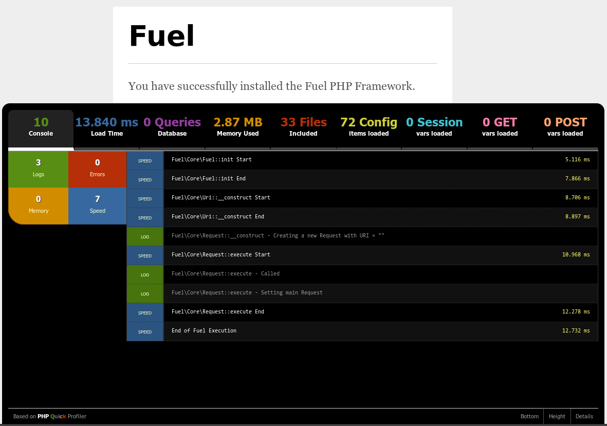 Caching: FuelPHP เสนอกลไกการแคชเพื่อปรับปรุงประสิทธิภาพของแอปพลิเคชัน รองรับไดรเวอร์แคชหลายตัว เช่น File, Memcached, Redis และ APC ช่วยให้นักพัฒนาสามารถแคชข้อมูลที่เข้าถึงบ่อยและหลีกเลี่ยงการคำนวณที่มีราคาแพง